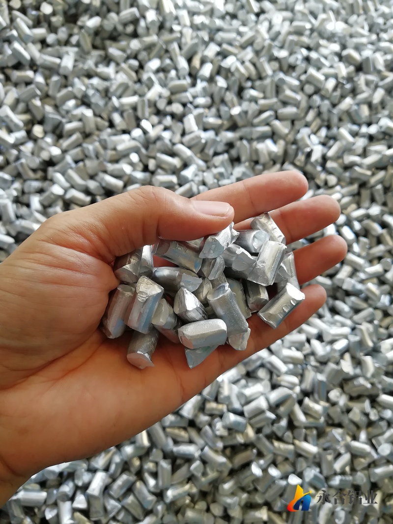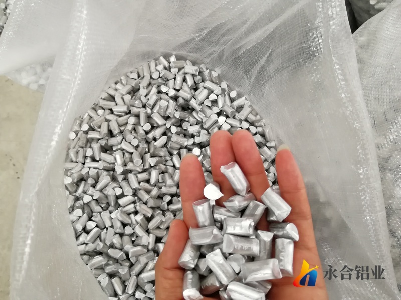 金屬鋁粒采用機械加工方法制成,具有顆粒均勻、成型好、活性鋁高的特點,廣泛應用于大中型鋼廠煉鋼脫氧和爐外精煉、提溫、調整鋼中氧含量及鋼液中酸溶鋁的含量,是鋼鐵.釩鐵.金屬鉻.金屬鍶.鈦鐵.鉛冶等煉產(chǎn)品的理想還原劑。顆粒長度范圍包括5--10mm,活性鋁含量不小于98.7%。